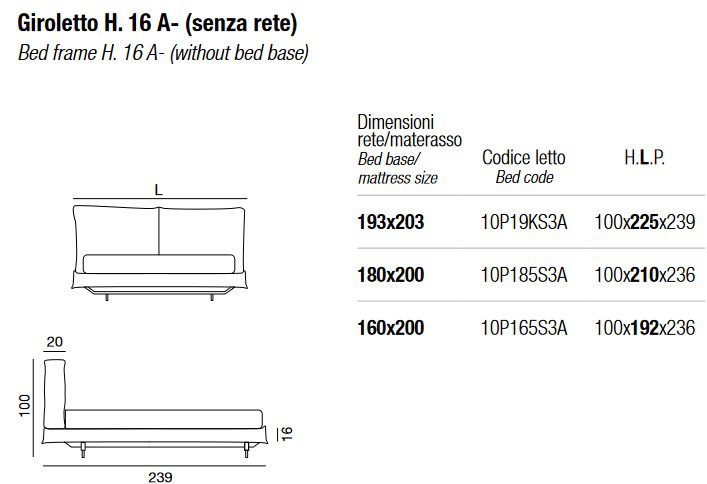 Disponible en las siguientes dimensiones (las medidas indicadas se refieren al espacio del colchón y el somier):