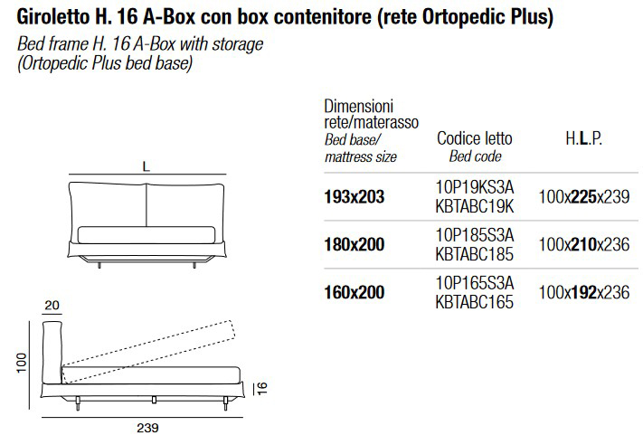 • Academy Piuma Giroletto H. 16 A- con caja de almacenamiento (somier Ortopedic Plus) - 193 x 203 cm