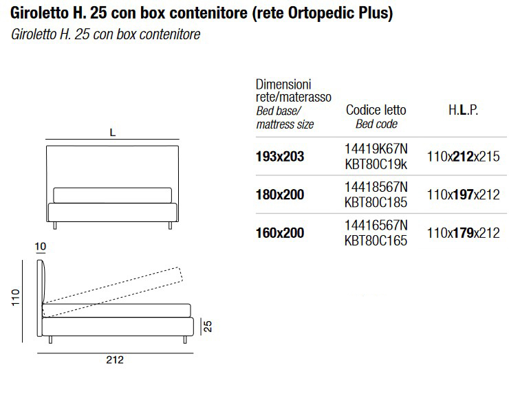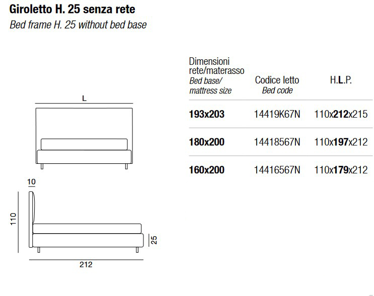 Las versiones con somier H. 14 o H. 25 pueden combinarse con las siguientes patas: