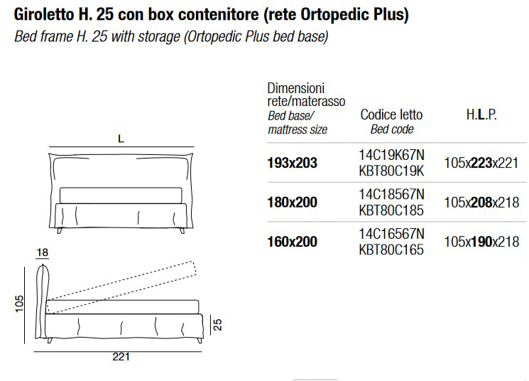 • Somier H. 25 con caja de almacenamiento (somier Ortopedic Plus) - 160 x 200 cm