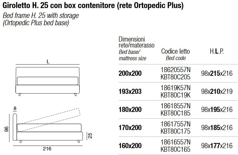 • Cama Max - marco de cama H. 25 con caja de almacenamiento (base ortopédica Plus) - 193 x 203