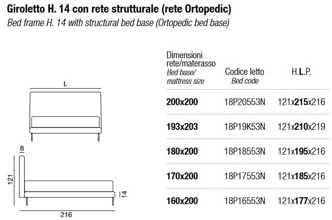 • Cama Max alta - marco de cama H. 14 A- (sin base) - 193 x 203