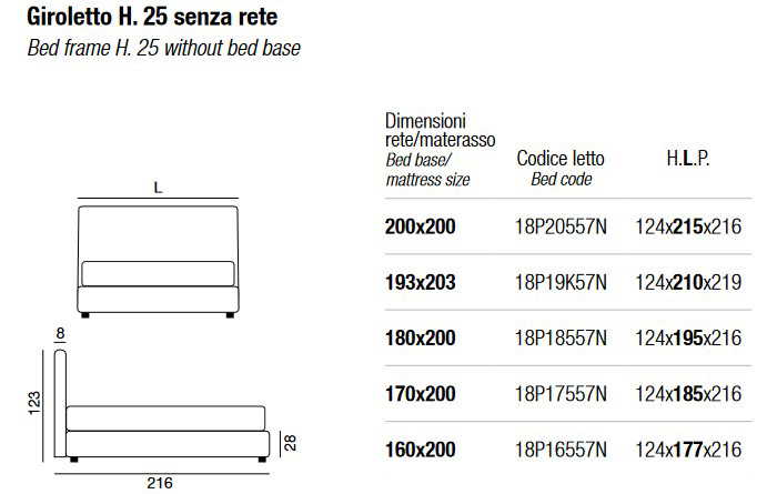 • Cama Max alta - marco de cama H. 25 sin base - 193 x 203