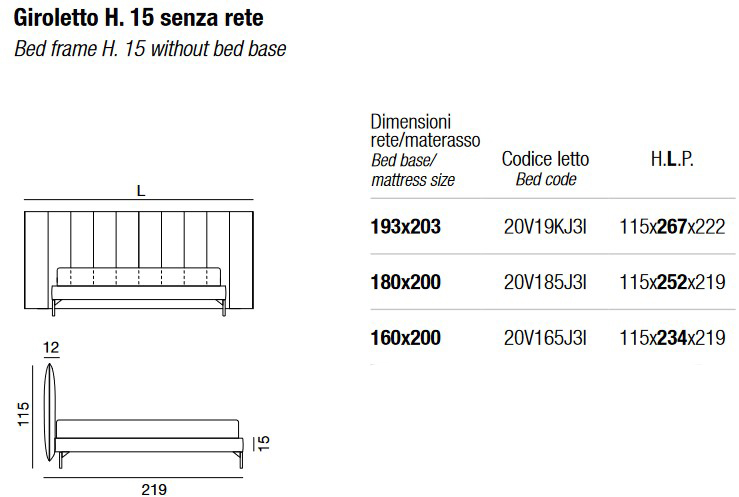 • marco de cama H. 15 (sin somier) - 193 x 203