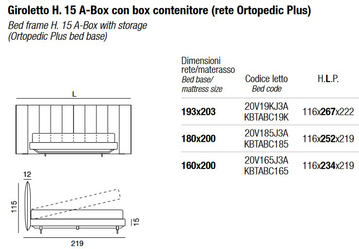 • marco de cama H. 15 A-Box con caja de almacenamiento (somier Ortopedic Plus) - 193 x 203