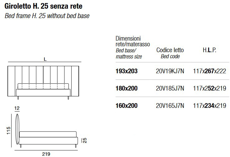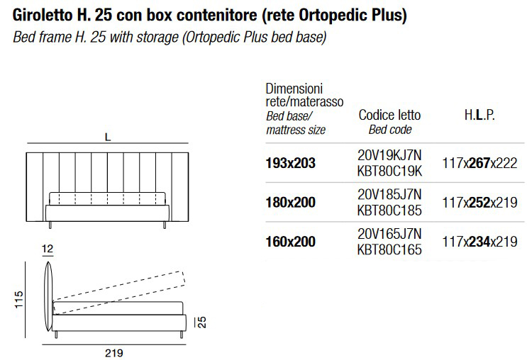 • marco de cama H. 25 con caja de almacenamiento (somier Ortopedic Plus)