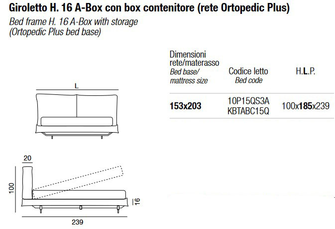• Academy Piuma estructura H. 16 A- con cajón de almacenamiento (somier Ortopedic Plus) - 153 x 203 cm