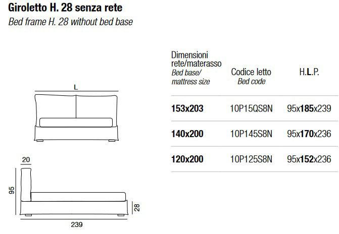 • Academy Piuma estructura H. 28 - 153 x 203 cm