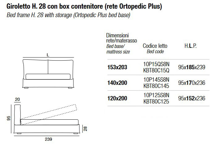 • Academy Piuma estructura H. 28 A- con cajón de almacenamiento (somier Ortopedic Plus) - 120 x 200 cm