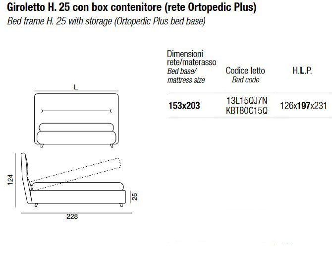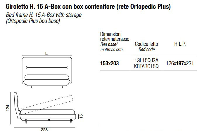 • Bastidor H. 15 con caja de almacenamiento (somier Ortopédico Plus) - 153 x 203 cm