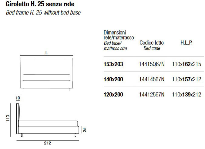 - Marco de cama H. 25 sin base - 120 x 200 cm