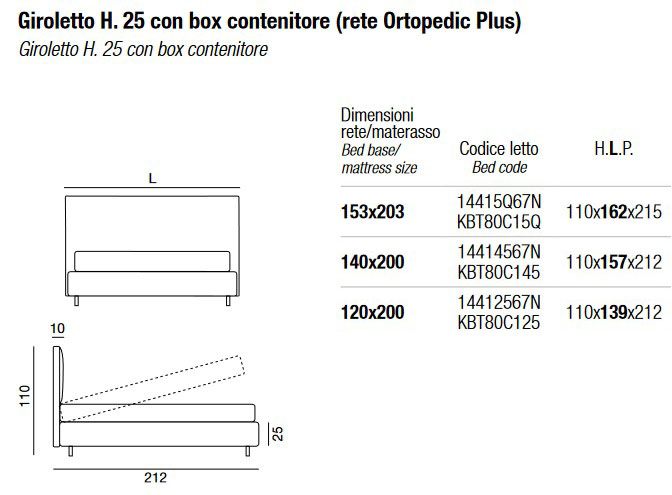 - Marco de cama H. 25 con caja de almacenamiento (base Ortopedic Plus) - 120 x 200 cm