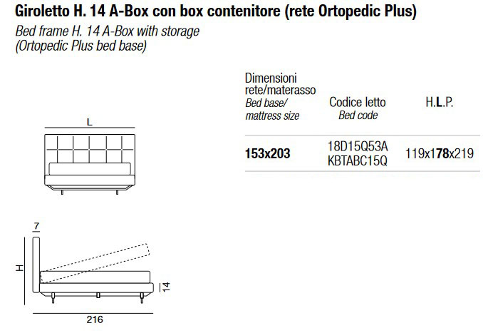 • Max Capitonné - marco de cama H. 14 A-Box con caja de almacenamiento (base Ortopédica Plus) - 153 x 203 cm