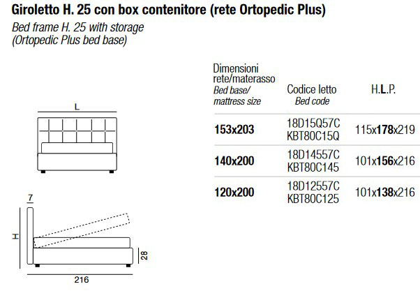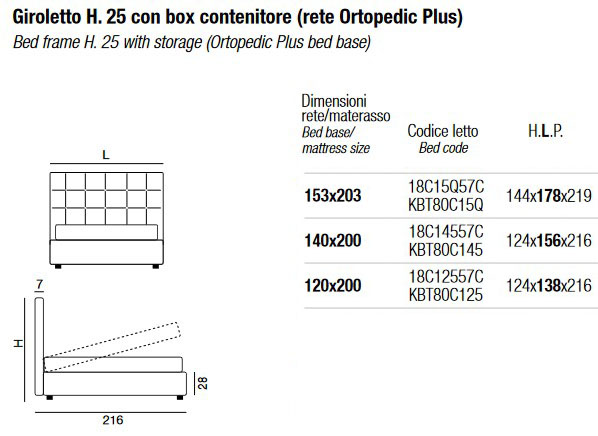 • Max Capitonné Alta - marco de cama H. 25 con caja de almacenamiento (base Ortopédica Plus) - 120 x 200 cm