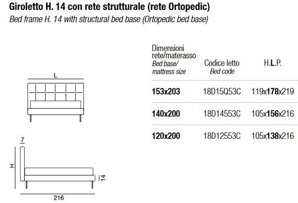 Disponible en las siguientes dimensiones (las medidas indicadas se refieren al espacio del colchón y la base):