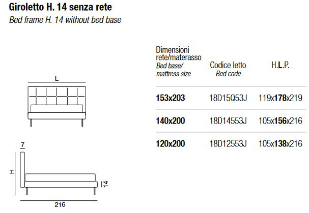 • Marco de cama H. 14 - H. 18 PIE61, acabados disponibles: aluminio pulido o negro mate