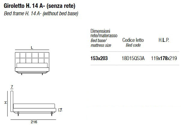 • Max Capitonné - marco de cama H. 14 A- (sin base) - 153 x 203 cm