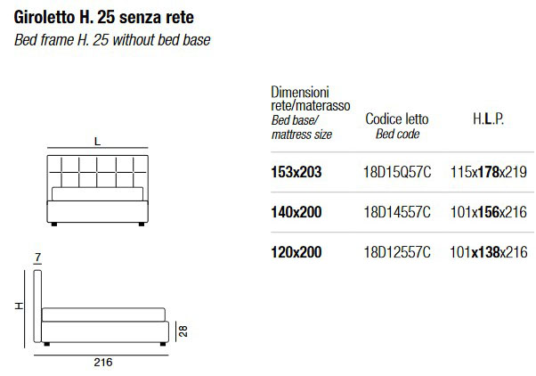 • Max Capitonné Alta - marco de cama H. 25 sin base - 120 x 200 cm