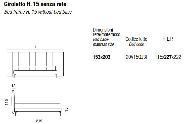 • Marco de cama H. 15 (sin base) - 153 x 203 cm