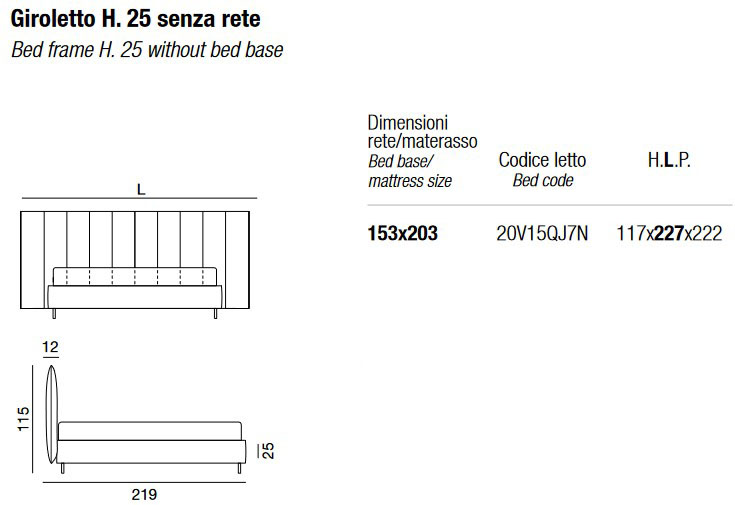 • Marco de cama H. 25 sin base - 153 x 203 cm