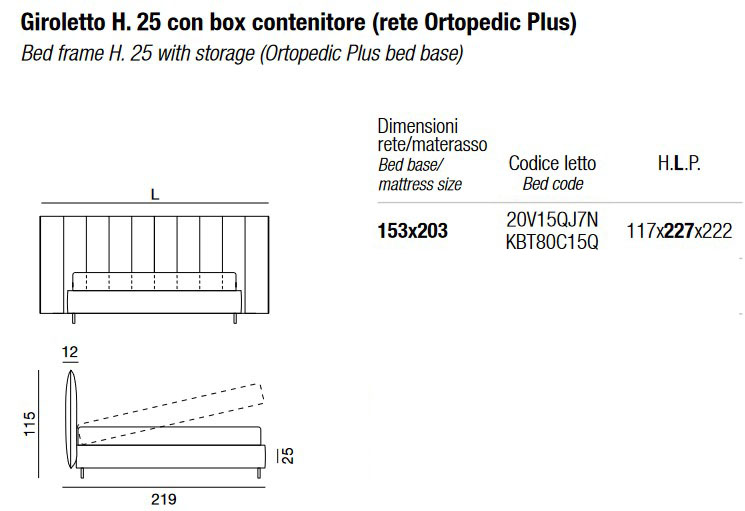 • Marco de cama H. 25 con caja de almacenamiento (base Orthopedic Plus) - 153 x 203 cm