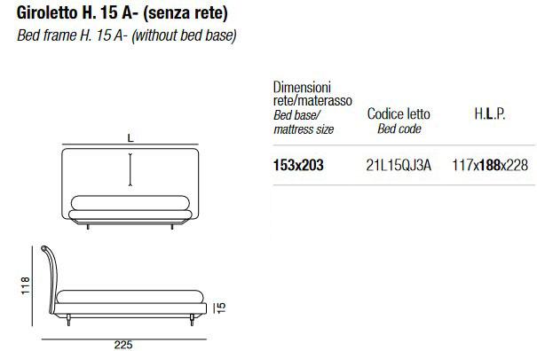 • Marco de cama H. 15 (sin base) - 153 x 203 cm