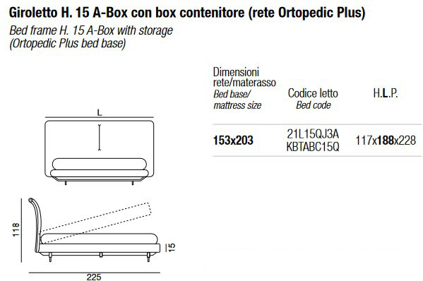 • Marco de cama H. 15 A-Box con caja de almacenamiento (base Orthopedic Plus) - 153 x 203 cm