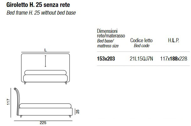 • Marco de cama H. 25 (sin base) - 153 x 203 cm