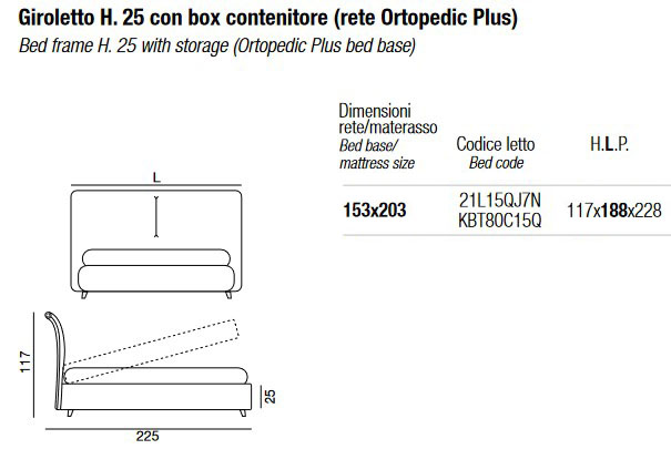 • Marco de cama H. 25 A-Box con caja de almacenamiento (base Orthopedic Plus) - 153 x 203 cm