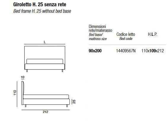 • Marco de cama H. 25 sin base - 90 x 200 cm