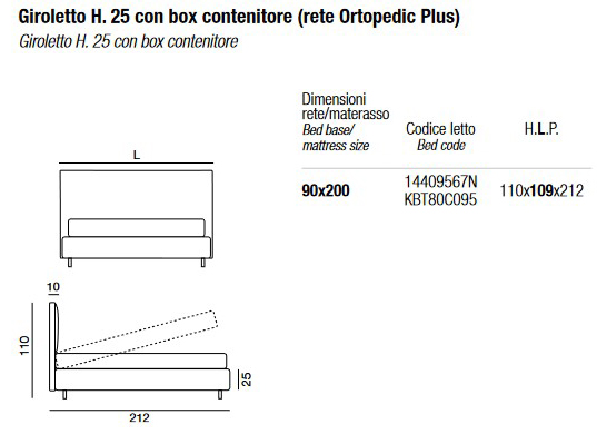 • Marco de cama H. 25 con caja de almacenamiento (base Orthopedic Plus) - 90 x 200 cm