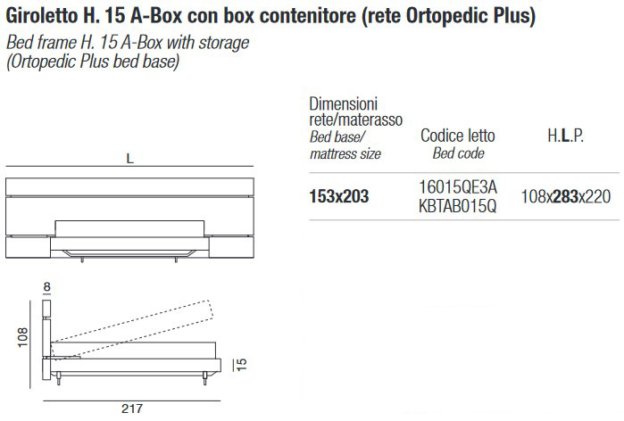 • Cabecero h. 108 - estructura H. 15 A-Box con caja de almacenamiento (somier Ortopedic Plus) - 153 x 203