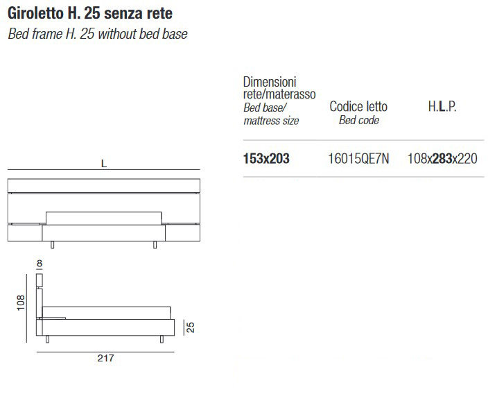 • Cabecero h. 108 - estructura H. 25 sin somier - 153 x 203