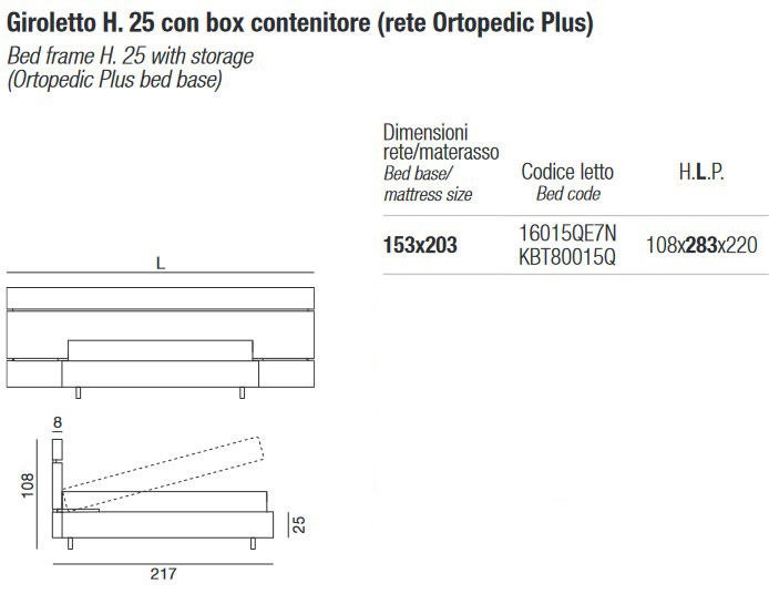 • Cabecero h. 108 - estructura H. 25 con caja de almacenamiento (somier Ortopedic Plus) - 153 x 203