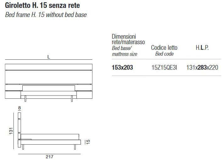 • Cabecero h. 131 - estructura H. 15 sin somier - 153 x 203