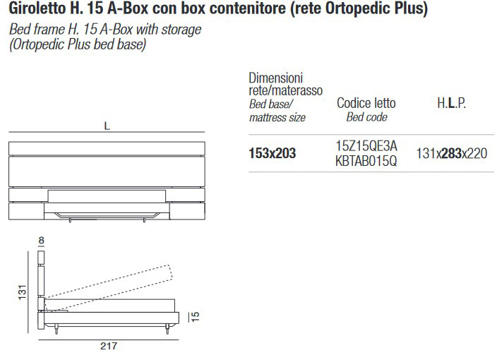 • Cabecero h. 131 - estructura H. 15 A-Box con caja de almacenamiento (somier Ortopedic Plus) - 153 x 203
