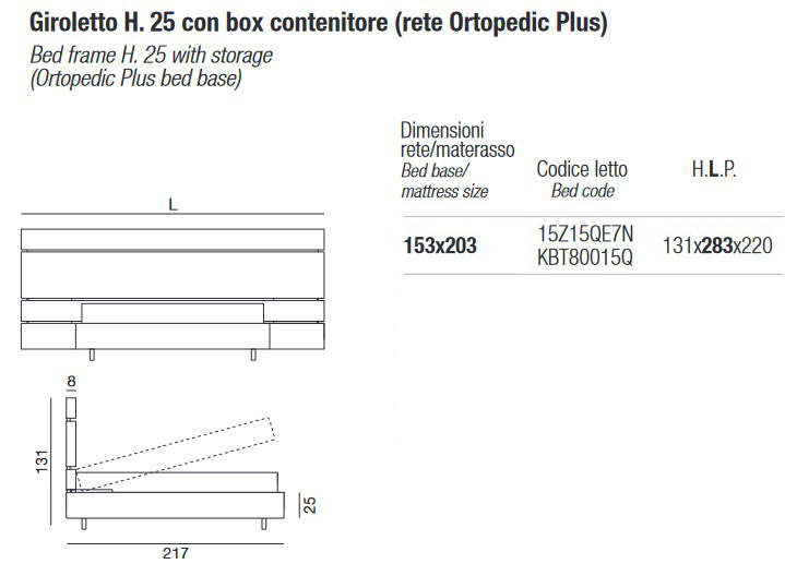 • Cabecero h. 131 - estructura H. 25 con caja de almacenamiento (somier Ortopedic Plus) - 153 x 203