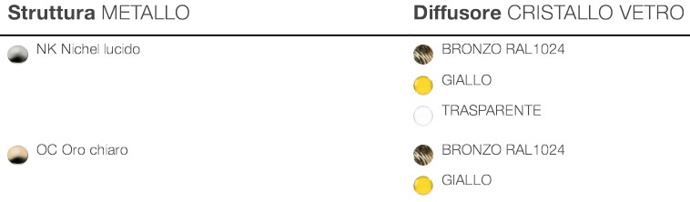 La estructura está hecha de metal en los acabados Oro Claro o Níquel Brillante.