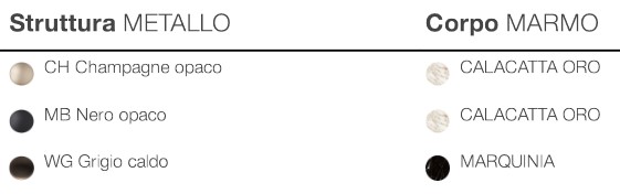 Estructura fabricada en metal mate champagne, negro mate o gris cálido.