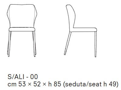 Silla Alissa Pezzani, asiento realizado en laminado con relleno de espuma de poliuretano de alta densidad, revestido con una amplia gama de tejidos, piel auténtica o símil piel. Estructura de acero.