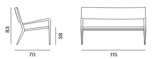Sofá Experience Unopiù, Estructura de metal pintado recubierto de WaProLace. Ideal para exteriores.