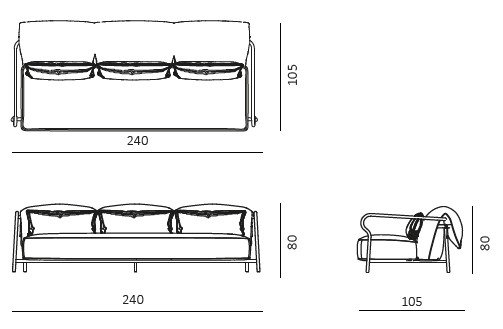 Sofá Salò Unopiù, Estructura metálica pintada. Asiento disponible en diferentes tejidos. 2 tamaños disponibles.