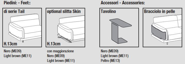 Nota: Panel del reposabrazos no desmontable. Mesa de centro Skin en metal pintado.