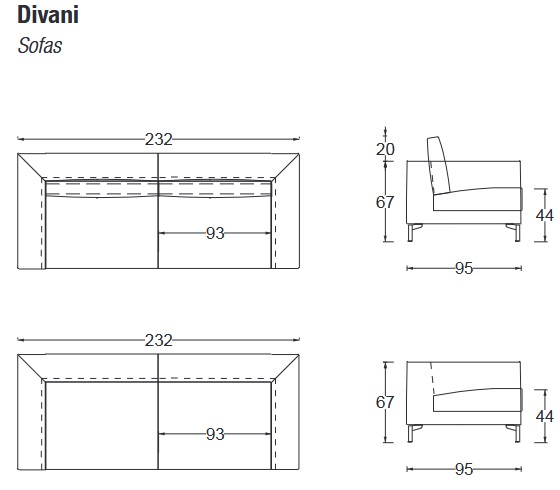 • Nathan sin cojines - L. 232 x P. 95 x H. 67 cm