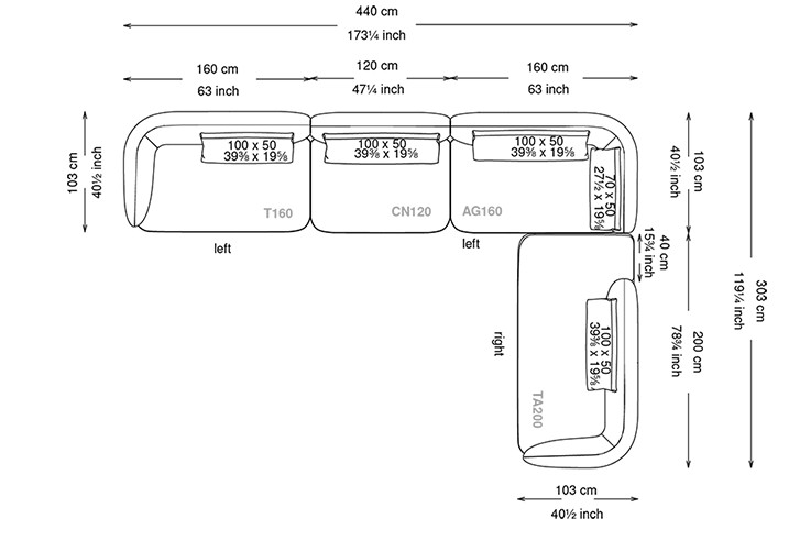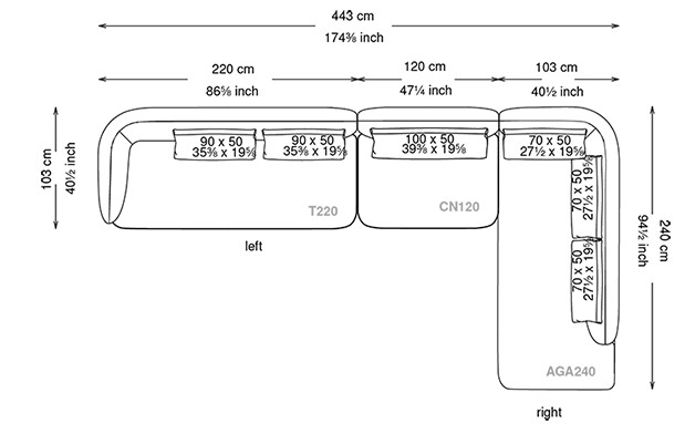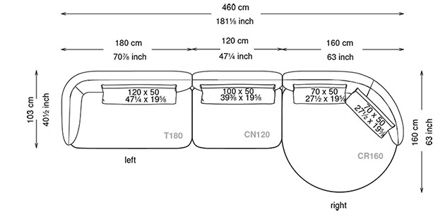 ATENCIÓN: Las fotos del anuncio representan las diferentes versiones del sofá. Para elegir la versión deseada consulte las fichas técnicas en el apartado de dimensiones.